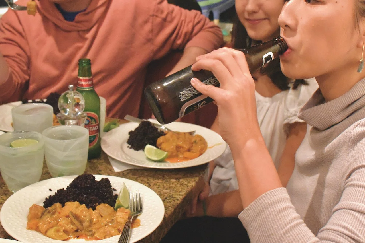 Serve with a scoop of rice and a wedge of lime. Enjoy!